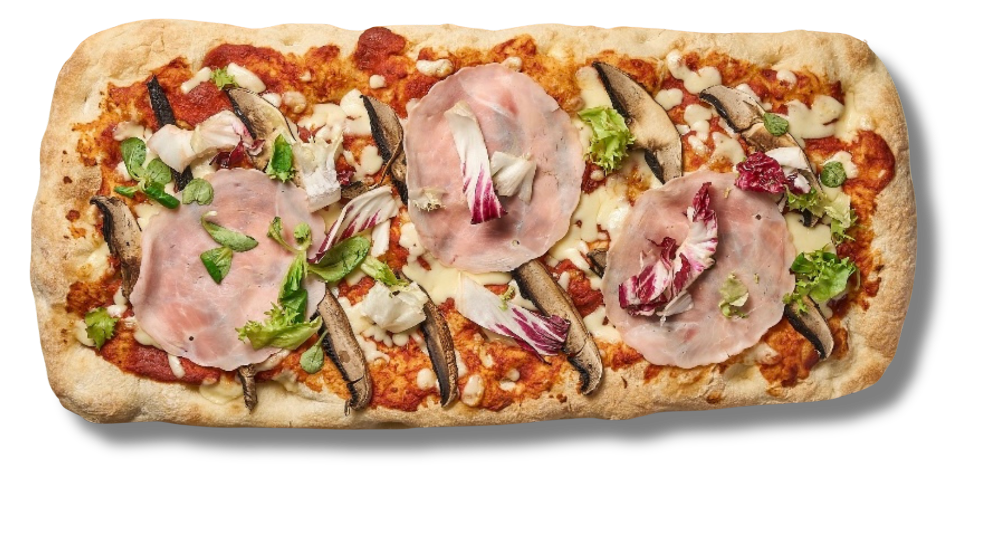 Tomatsås Mozzarella Prosciutto Cotto Svamp Parmesan Sallad Basilika
