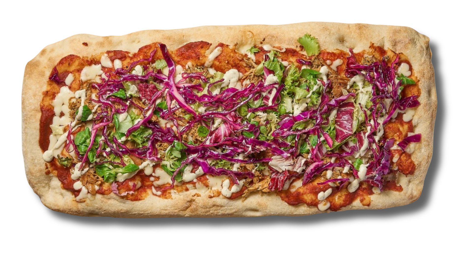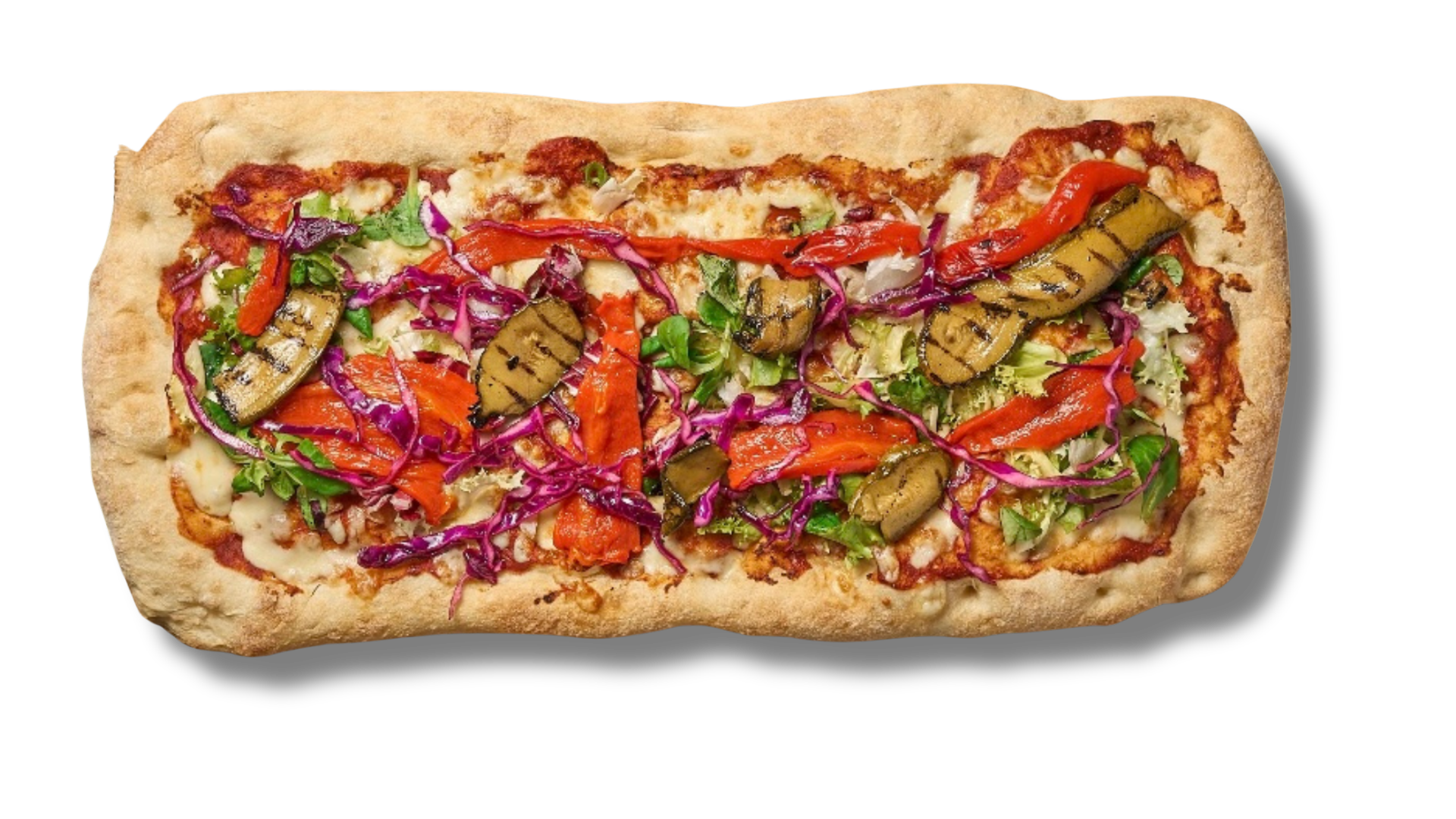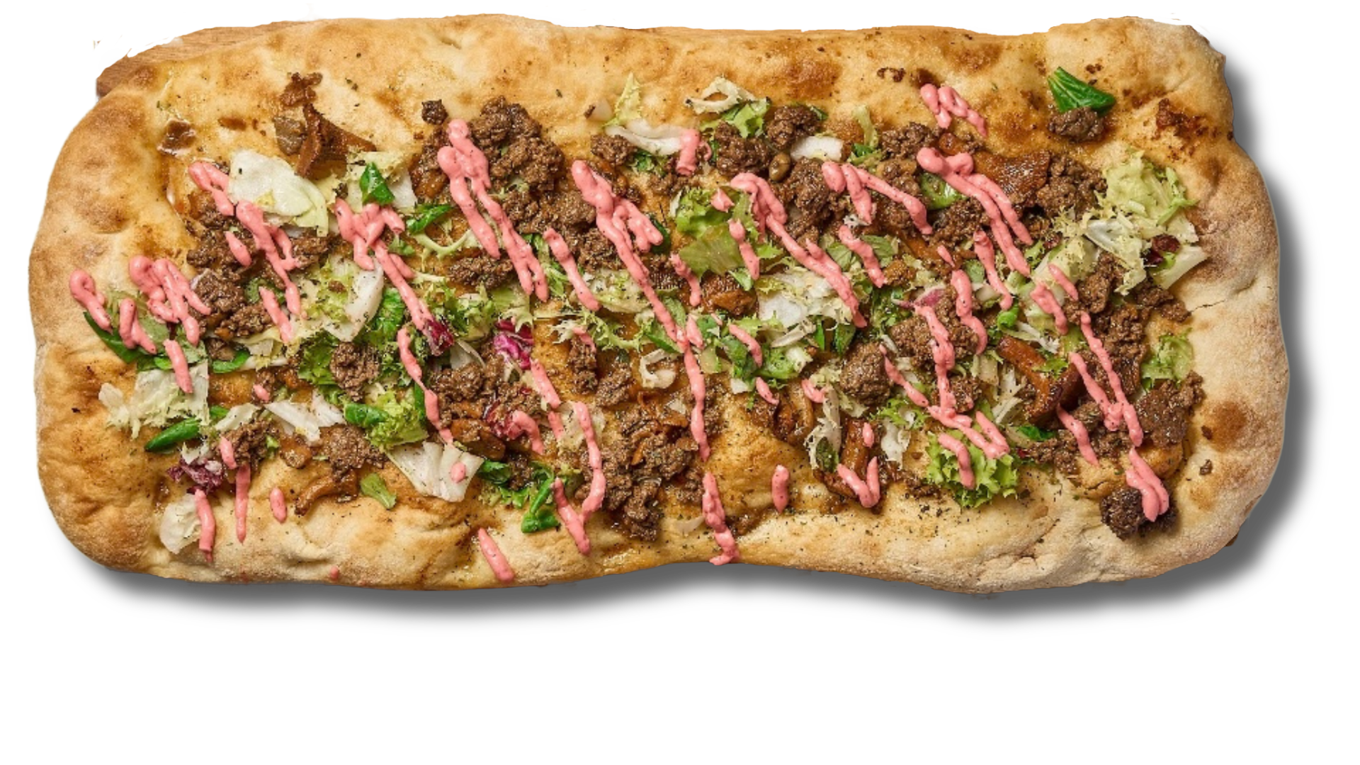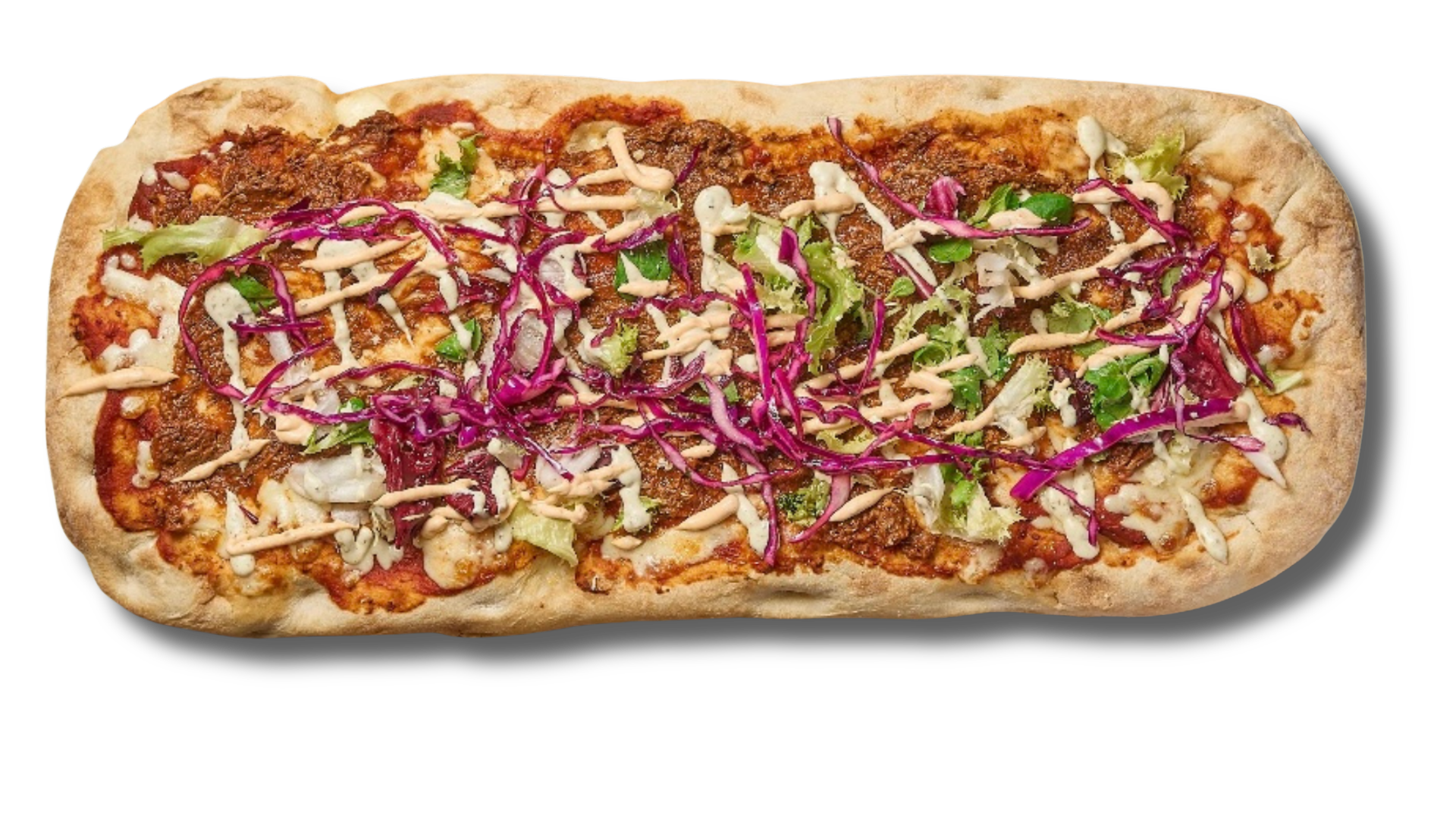 Tomatsås Mozzarella Bakat Högrev Parmesan Rödkål Paprika mayo Pesto mayo (innehåller nötter) Sallad Basilika