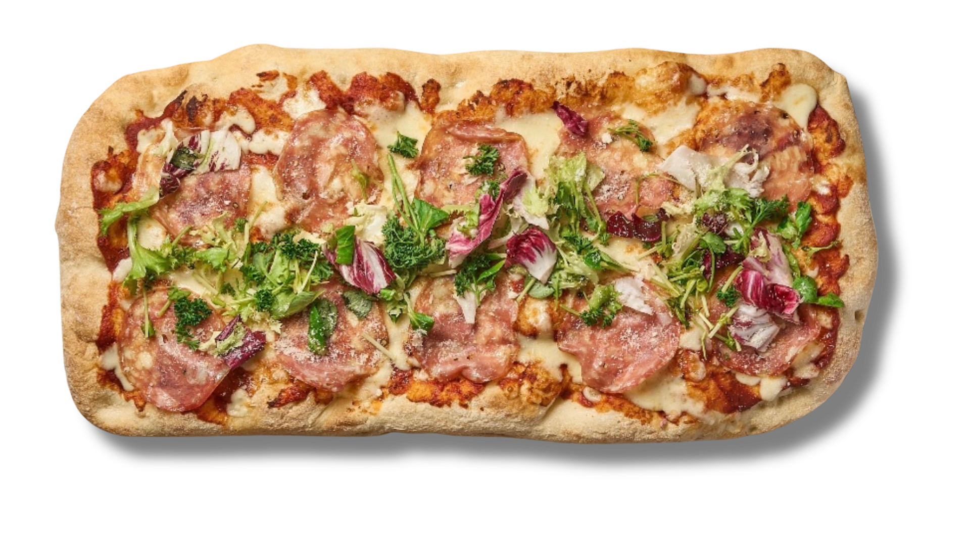 Tomatsås Mozzarella 2 x Salami Tryffelolja Parmesan Sallad Basilika